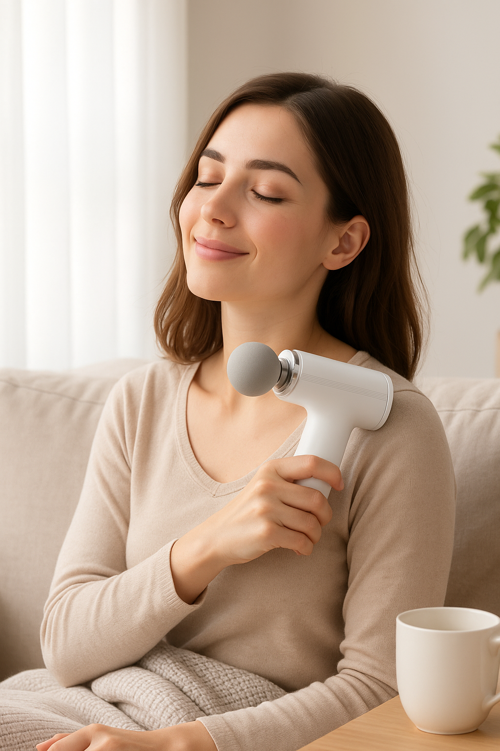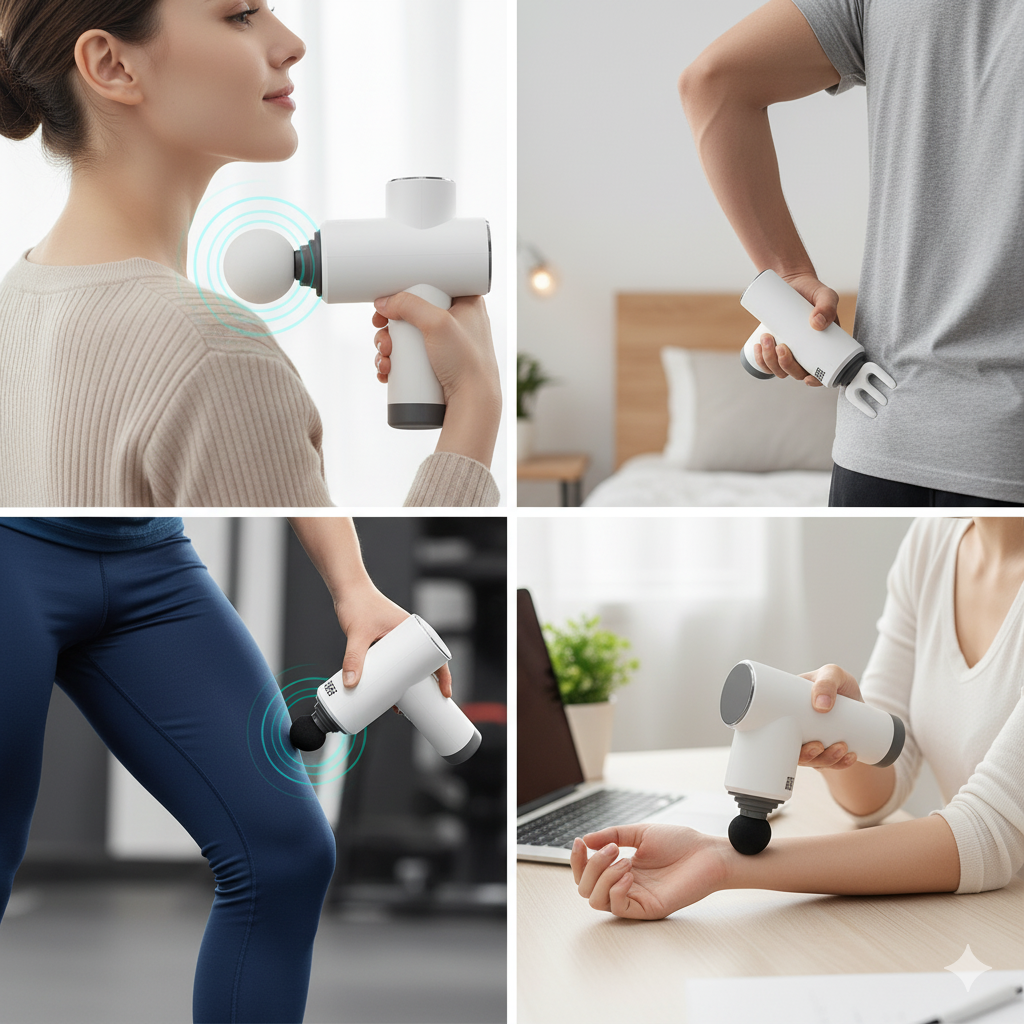 Designed for effortless daily use, this portable massage gun helps relax every muscle group—from neck and shoulders to legs and arms. Its ergonomic design ensures comfort and control, whether you’re at home, in the gym, or at the office. Experience soothing recovery and lasting comfort wherever life takes you.